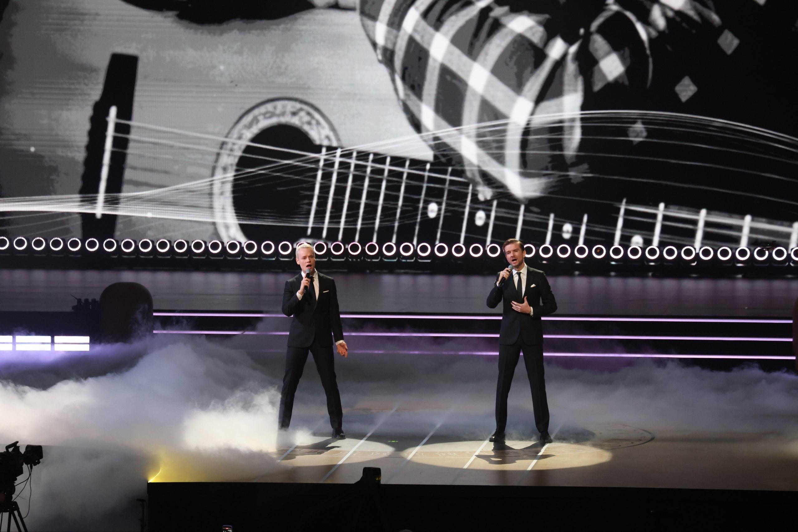 Зал долго аплодировал, встречая Олега и Родиона Газмановых, а также Дениса и Влада Майдановых. Прозвучала песня «Включай нашу».