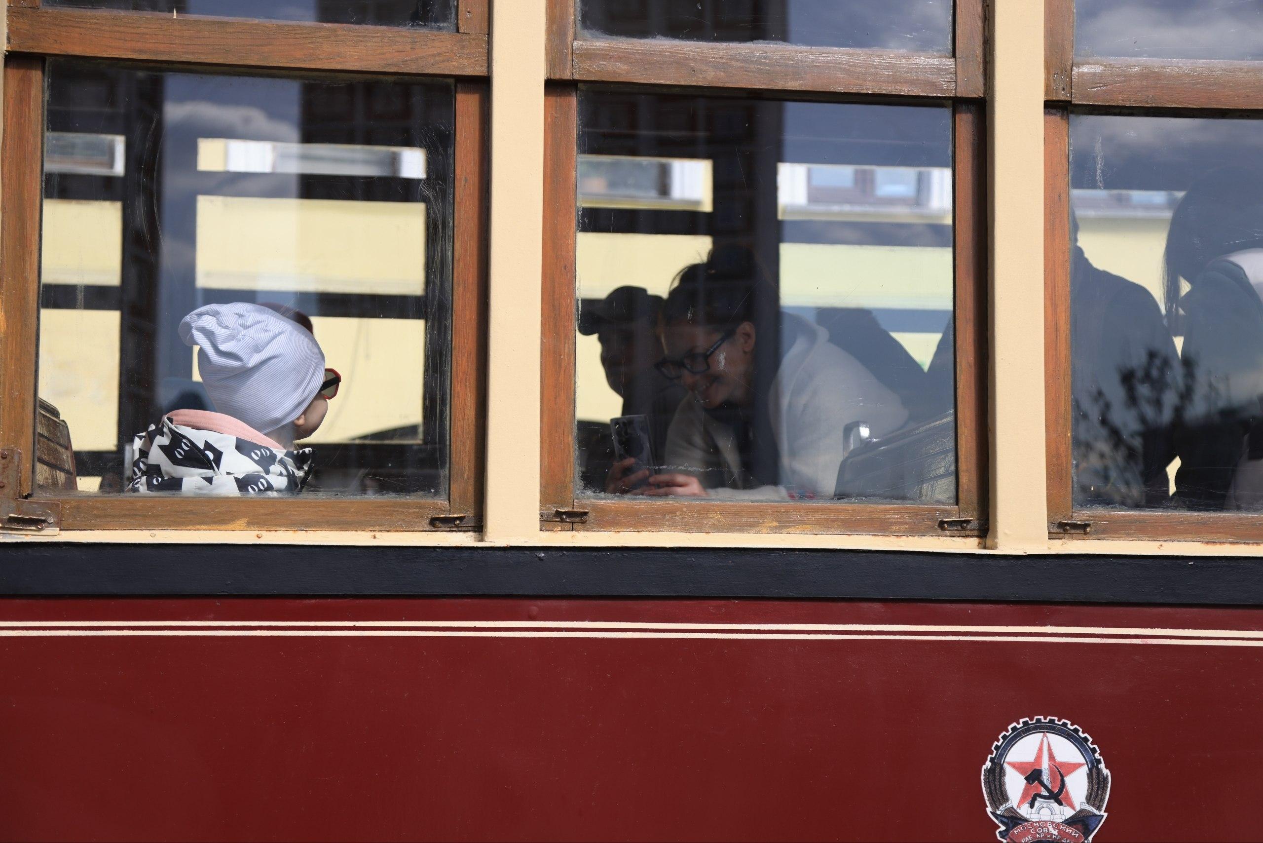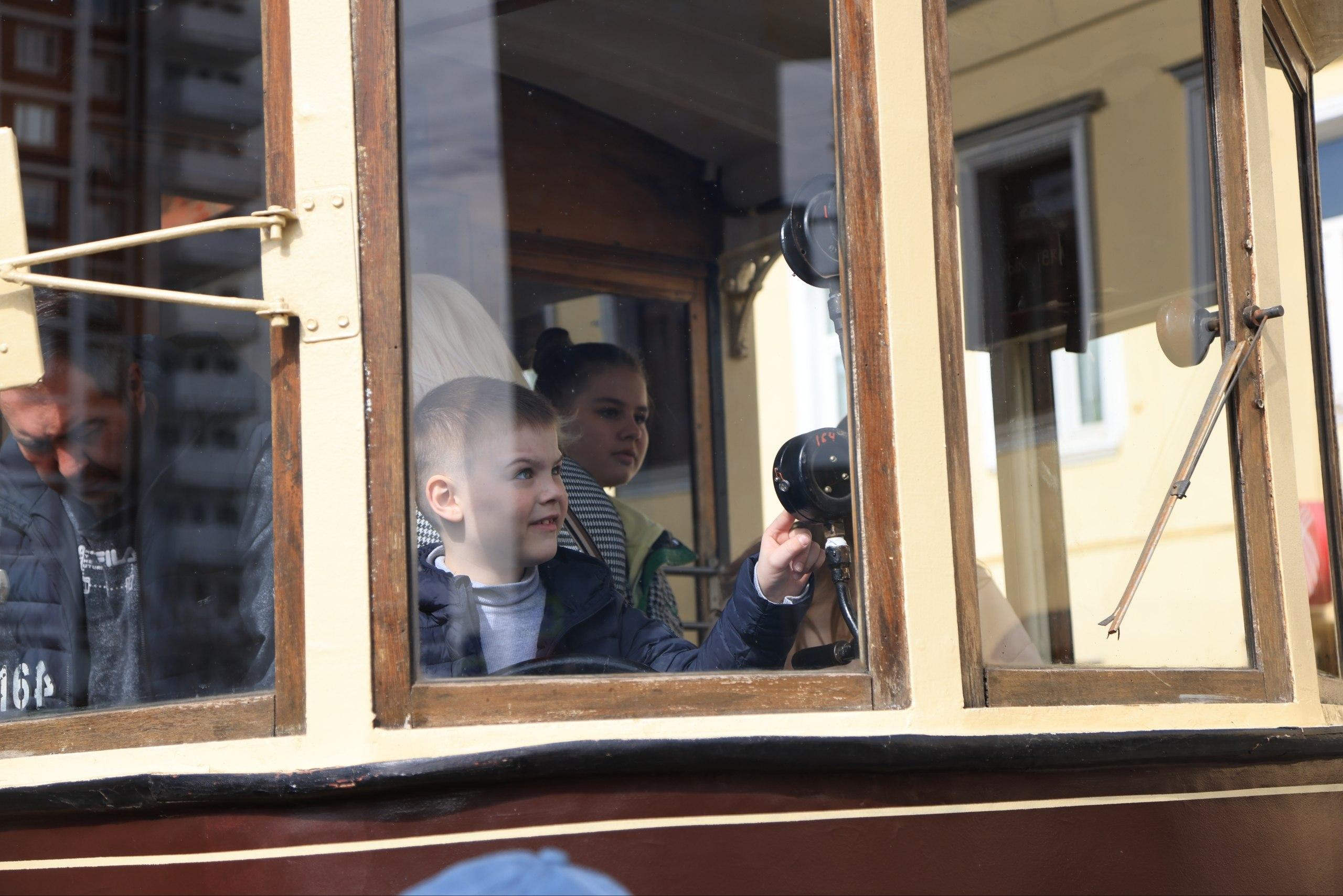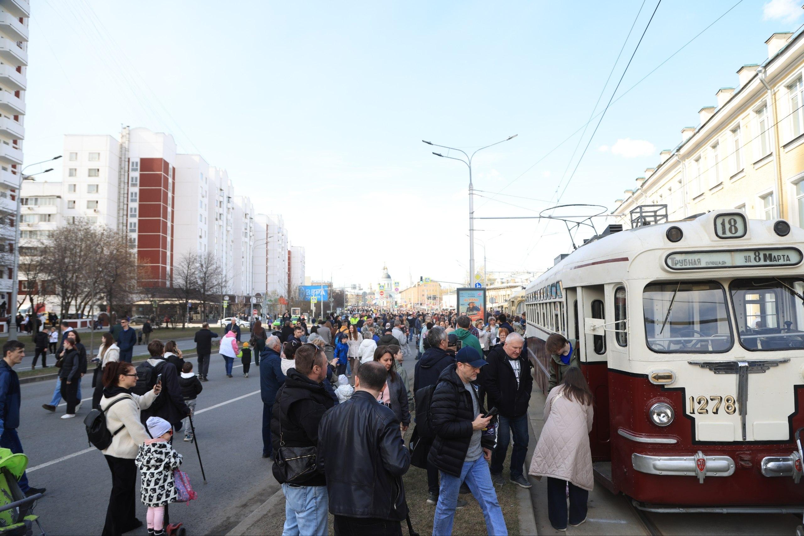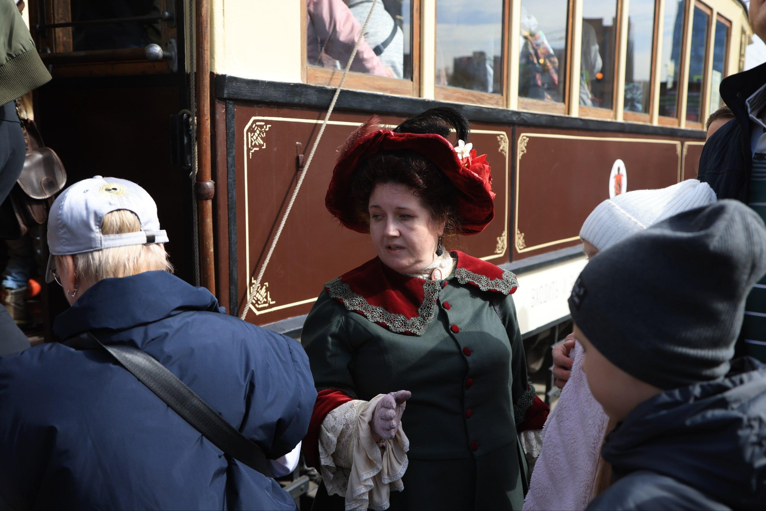 Мероприятие приурочено к 127-летию московского трамвая. Многие семьи пришли с детьми, которые с интересом изучали транспорт прошлого.