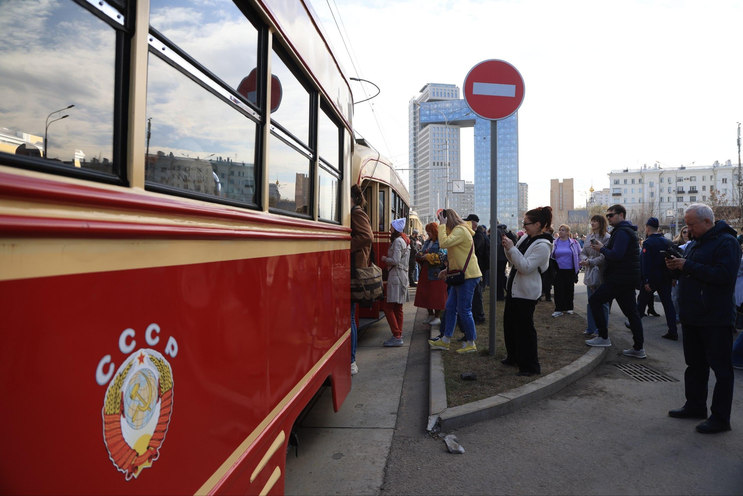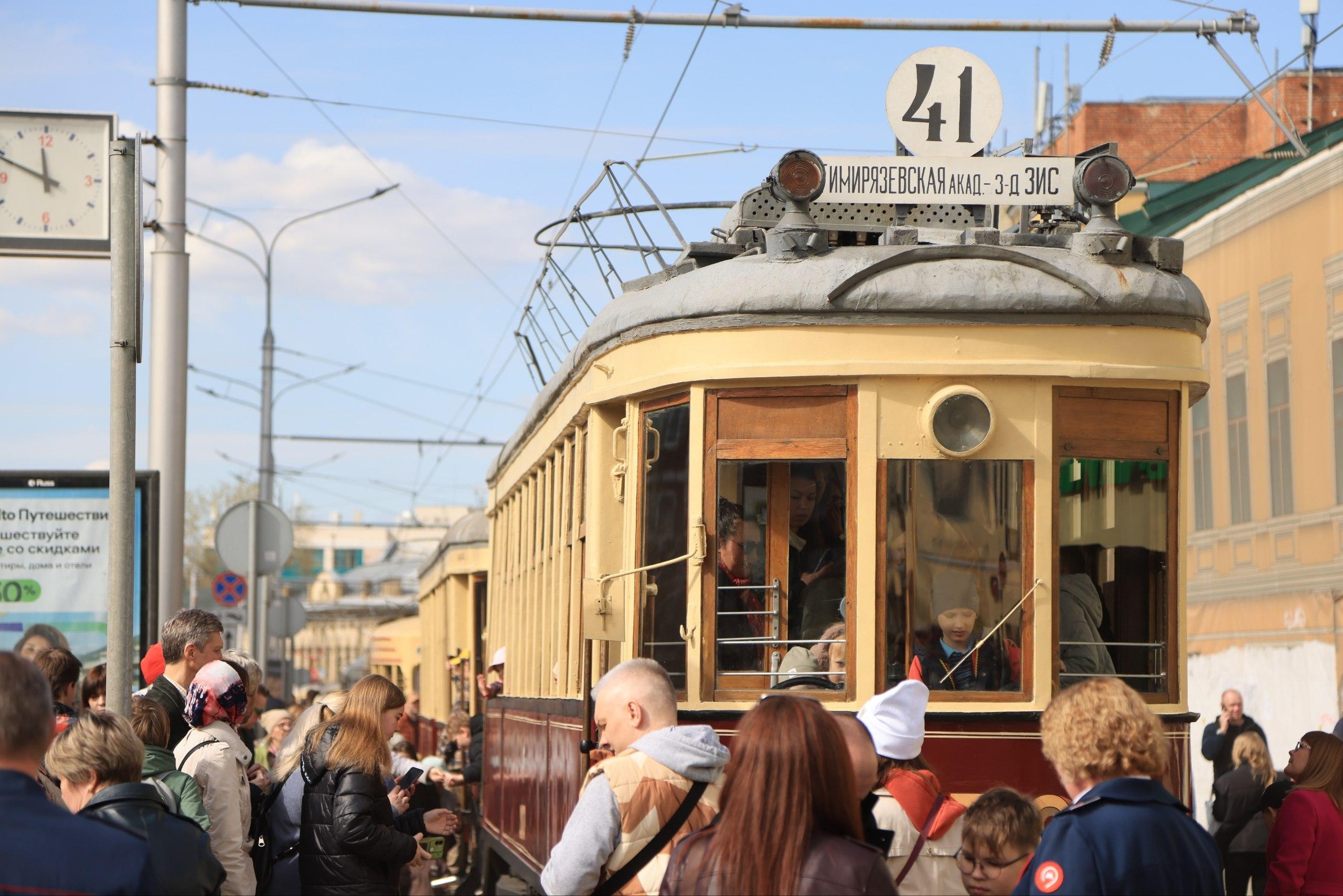 Исторические трамваи проехали по Москве в день 127-летия