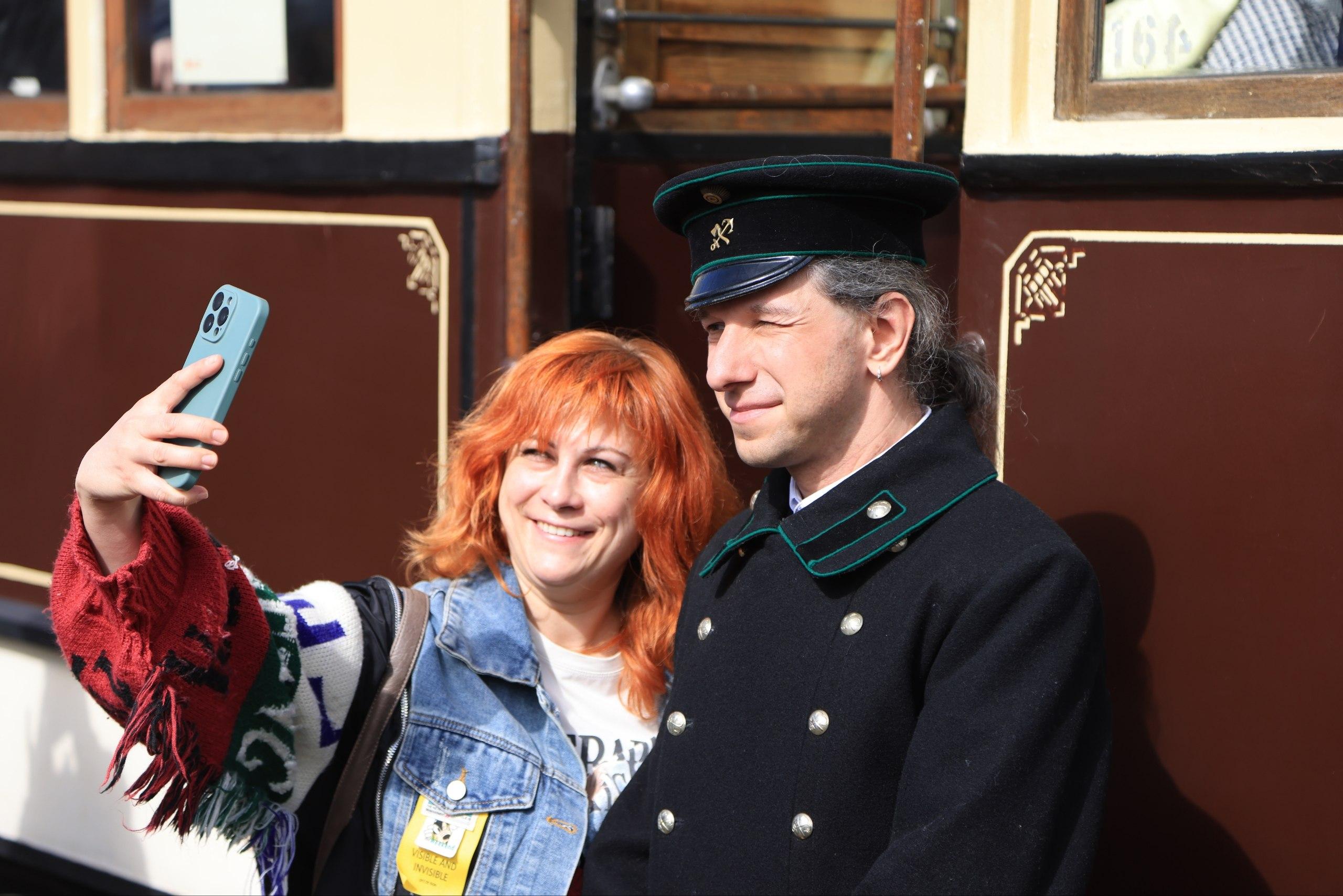 Гости делают фотографии с реконструктором