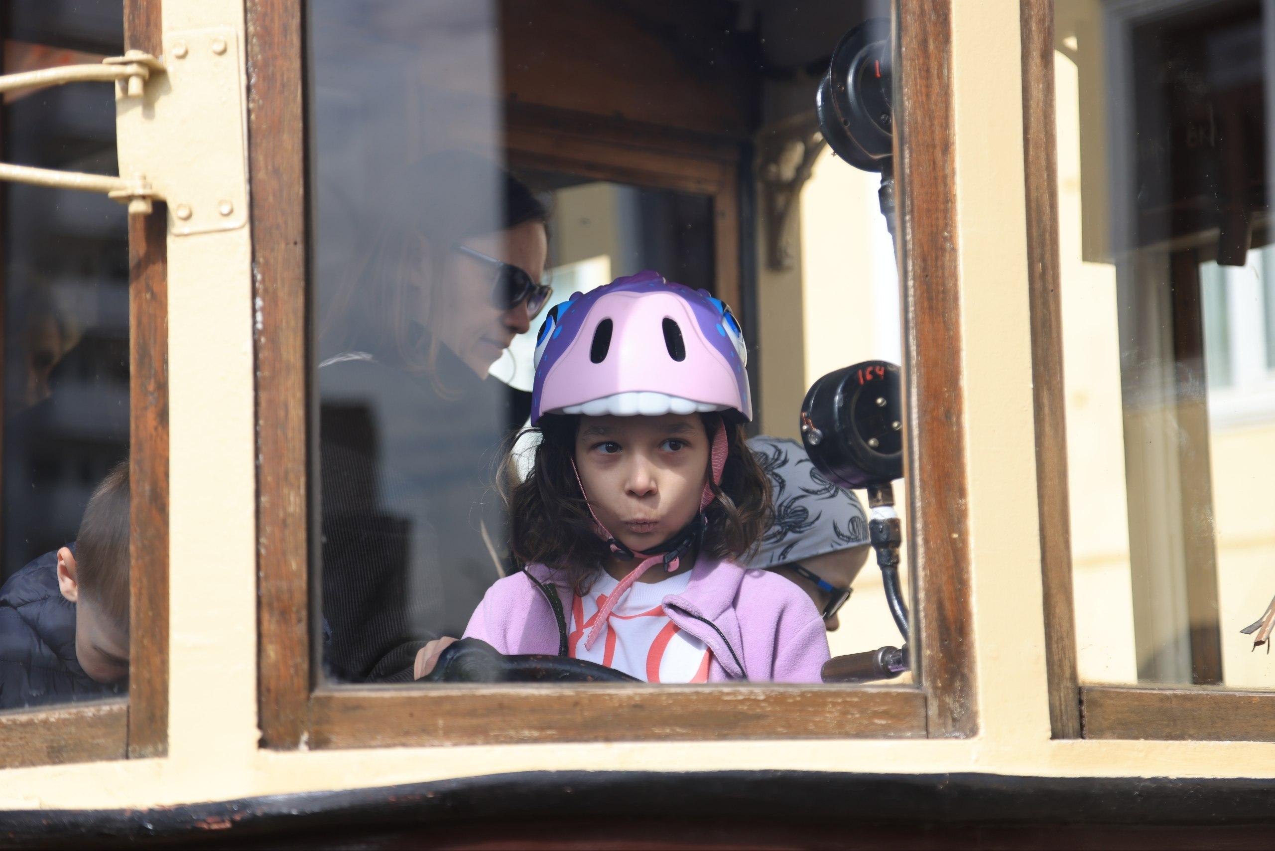 Юные посетители знакомятся с трамваями