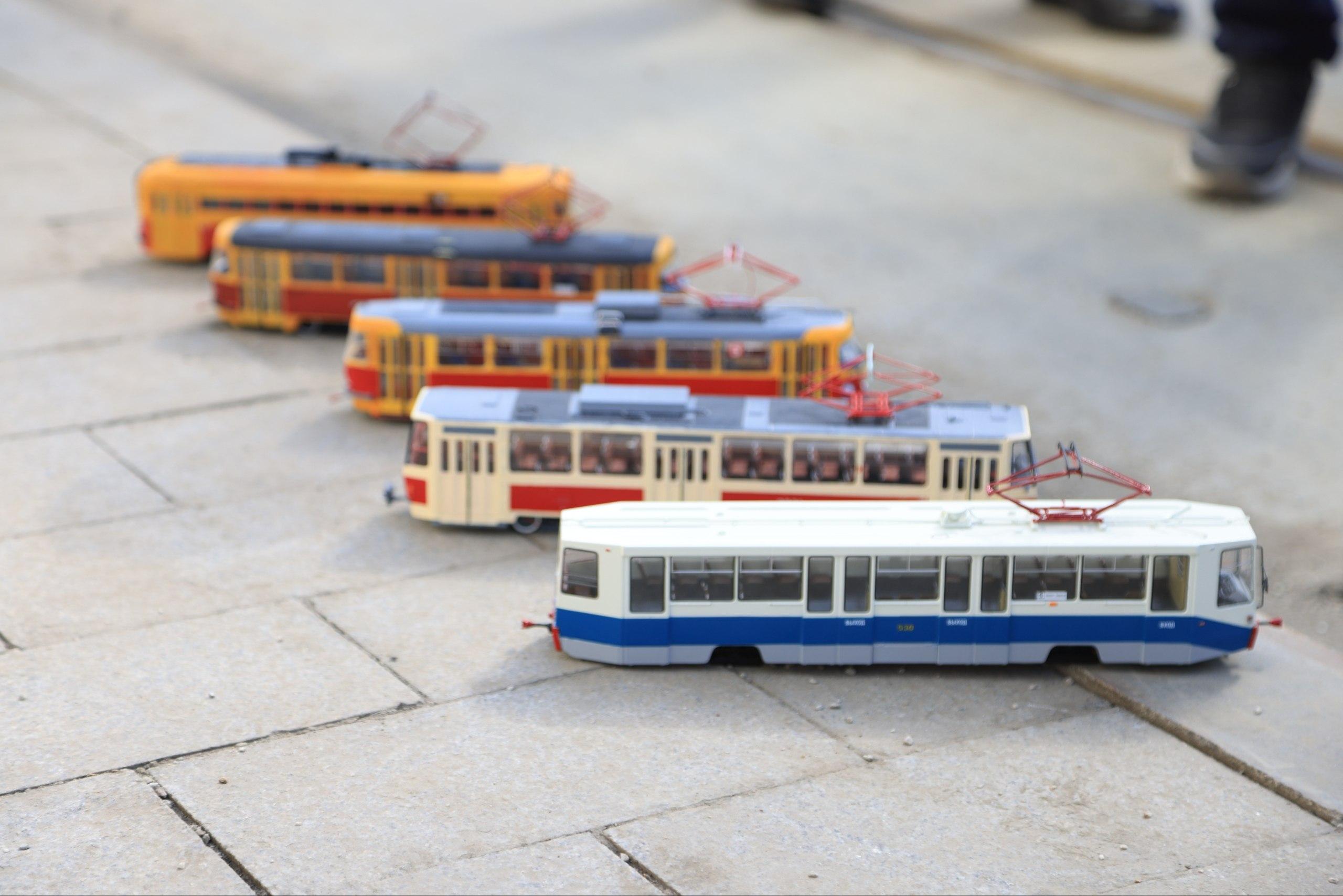 Особое внимание посетителей привлекли миниатюрные копии трамваев, представленные на выставке.