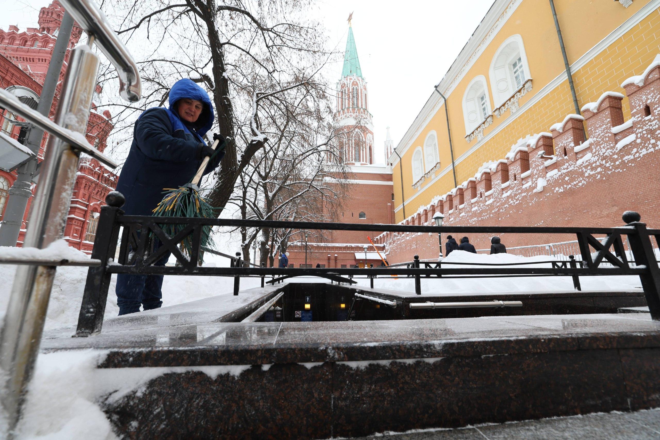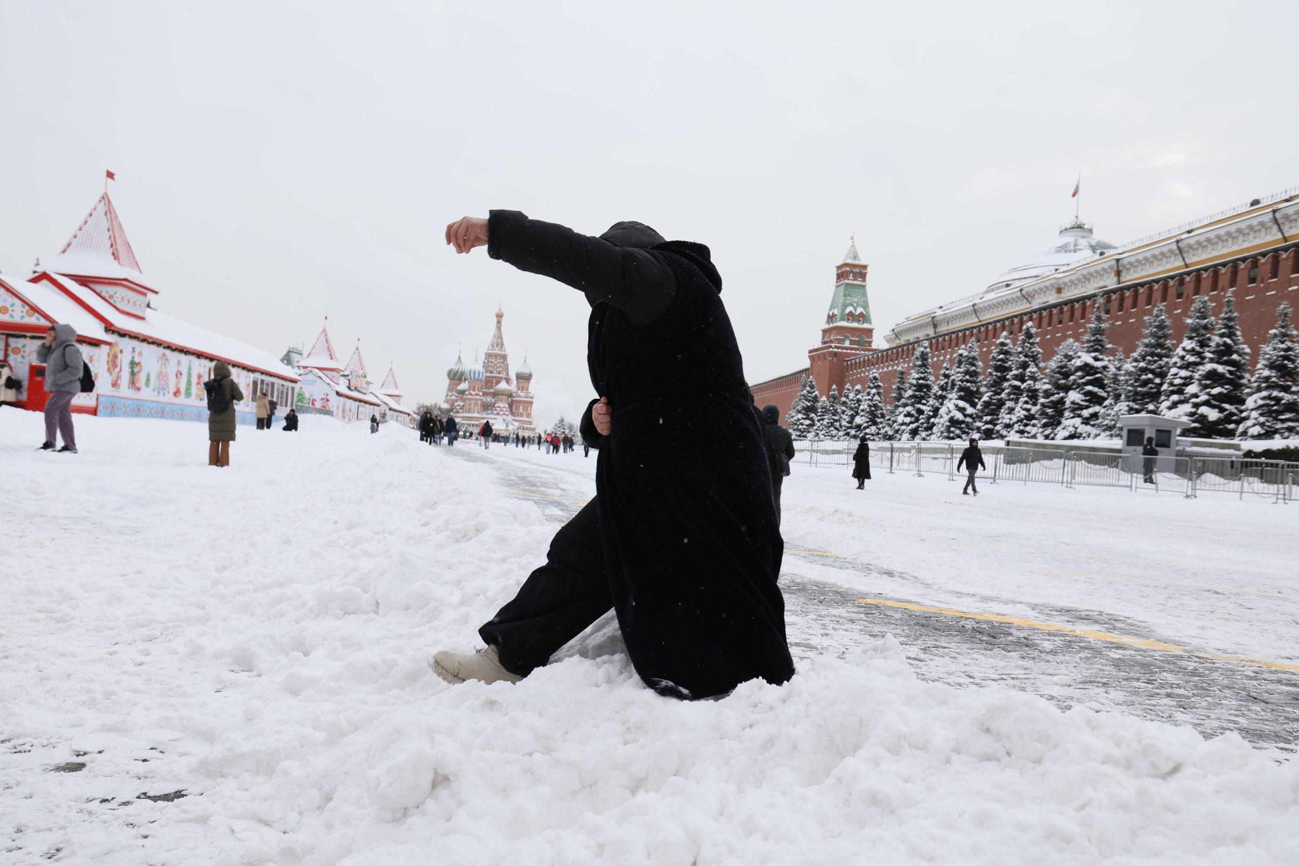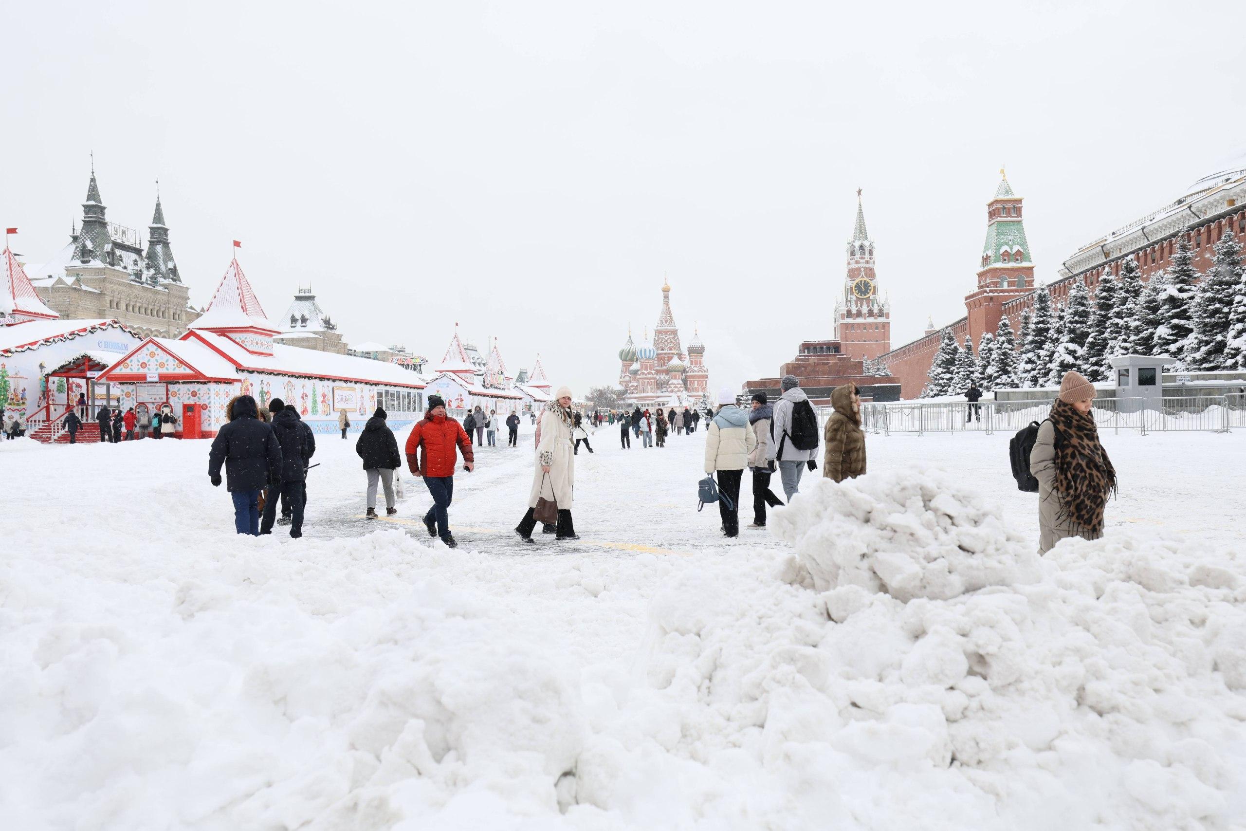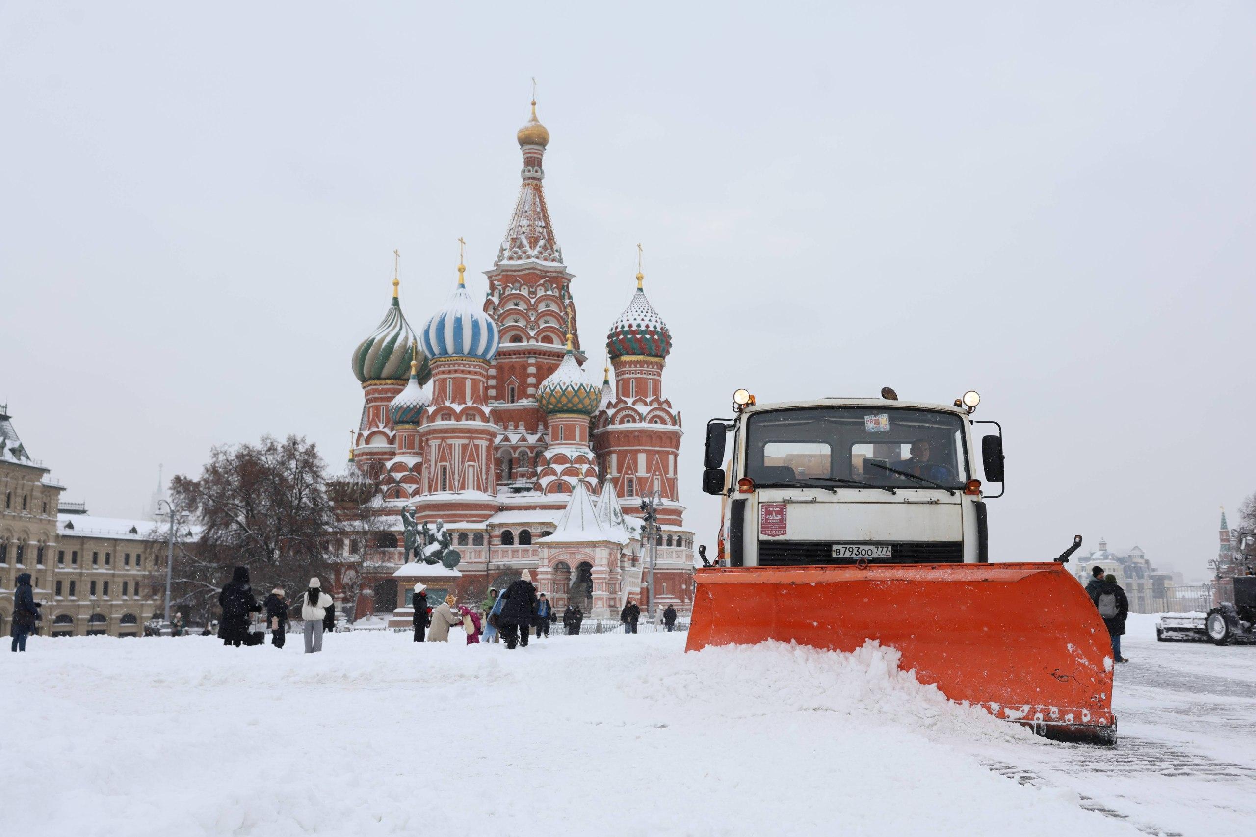 Сильный снегопад снова накрыл Москву, оставив высокие сугробы даже в самом центре города. На Красной площади коммунальные службы ведут активную расчистку с использованием техники, но работа ещё не завершена.