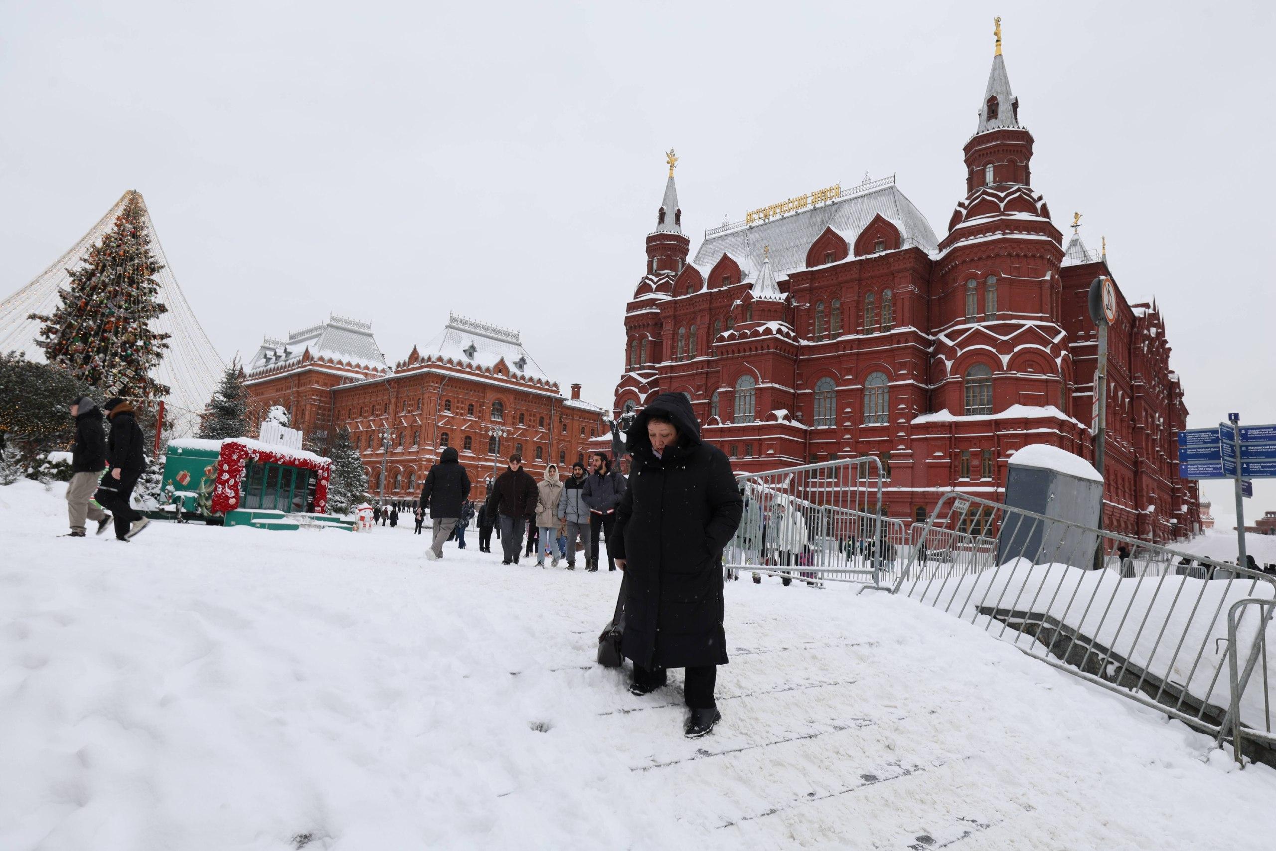 Красная площадь после снегопада: скользкие ступеньки и сугробы
