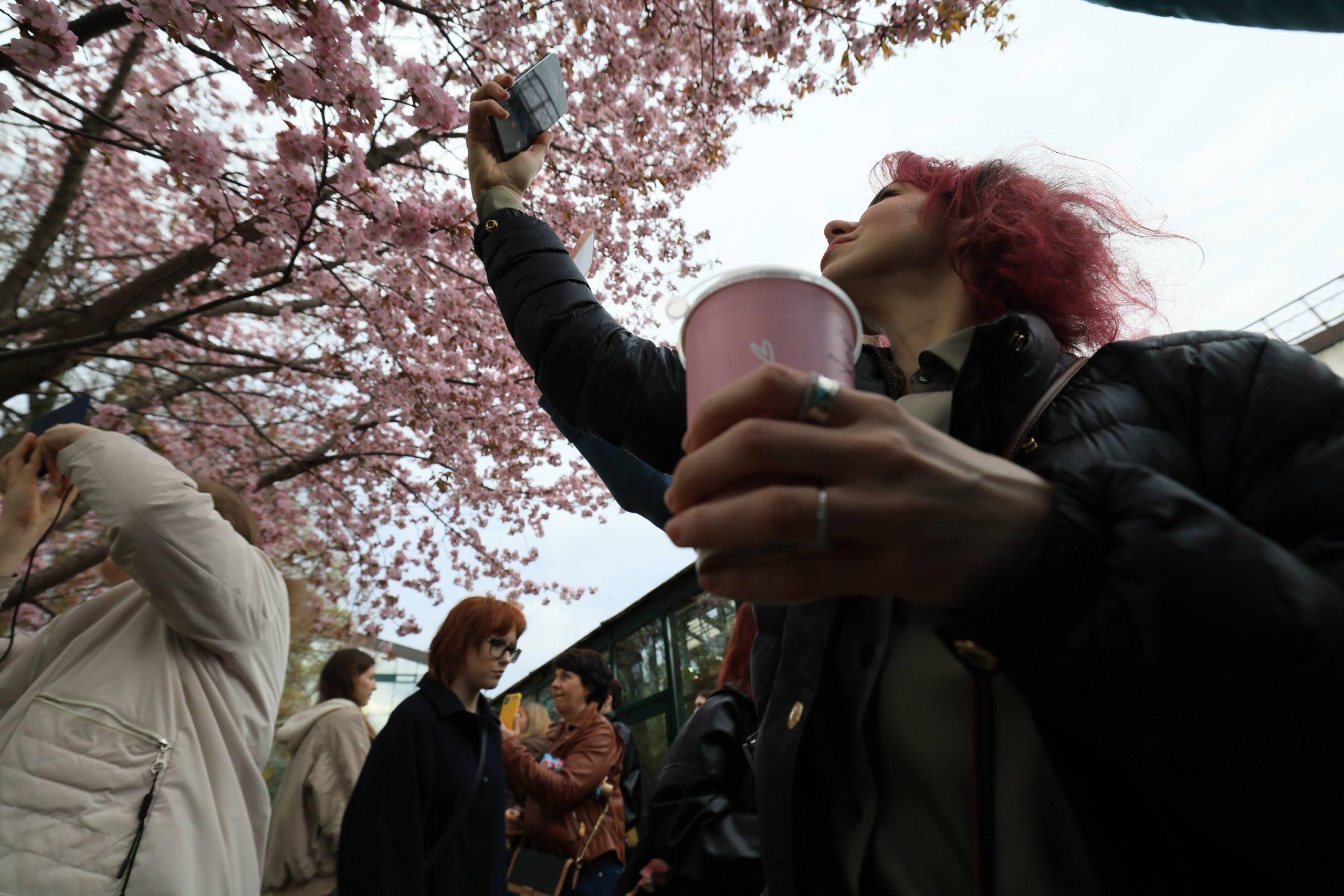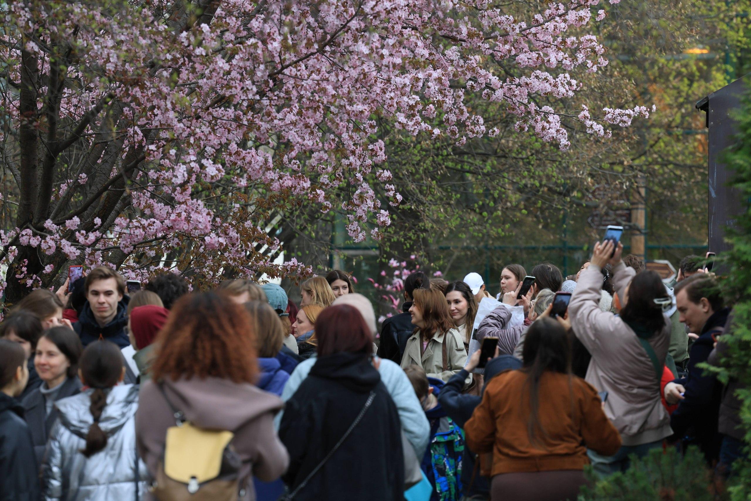 Москвичи толпами идут в Аптекарский огород на цветение сакуры