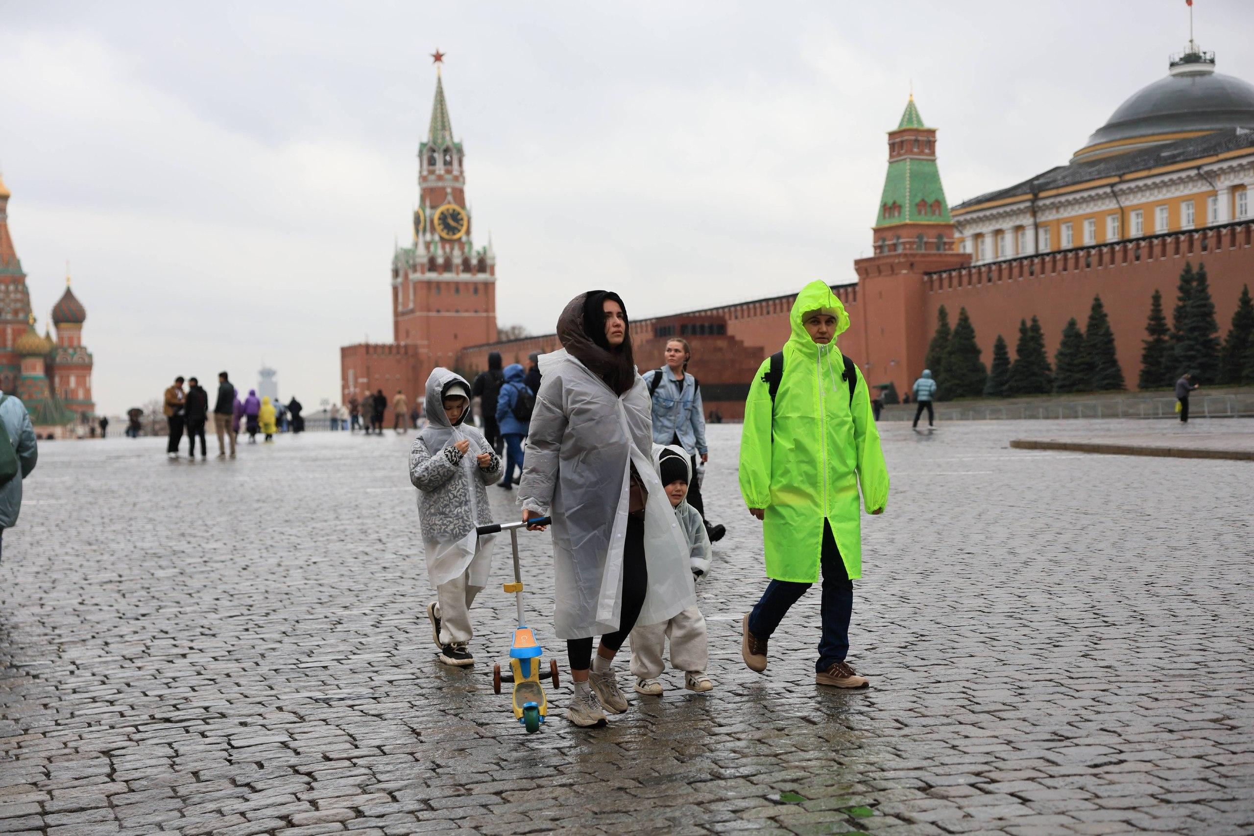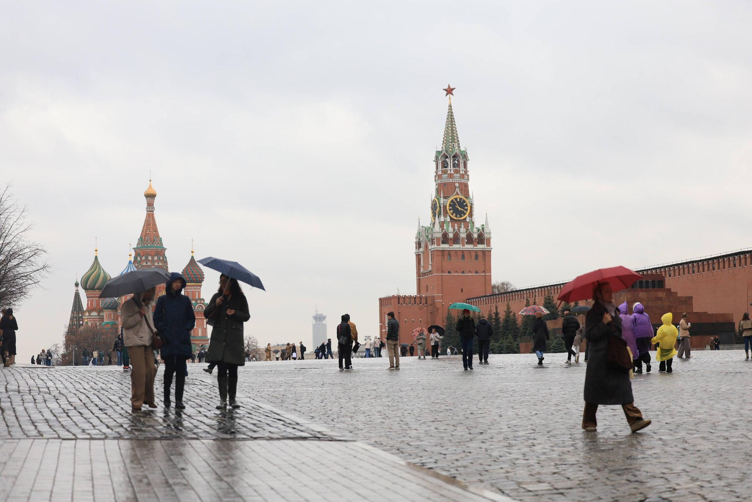 На Красной площади, несмотря на моросящий дождь, продолжали прогуливаться туристы. Хотя погода не способствовала большому скоплению людей, главная площадь страны не опустела.