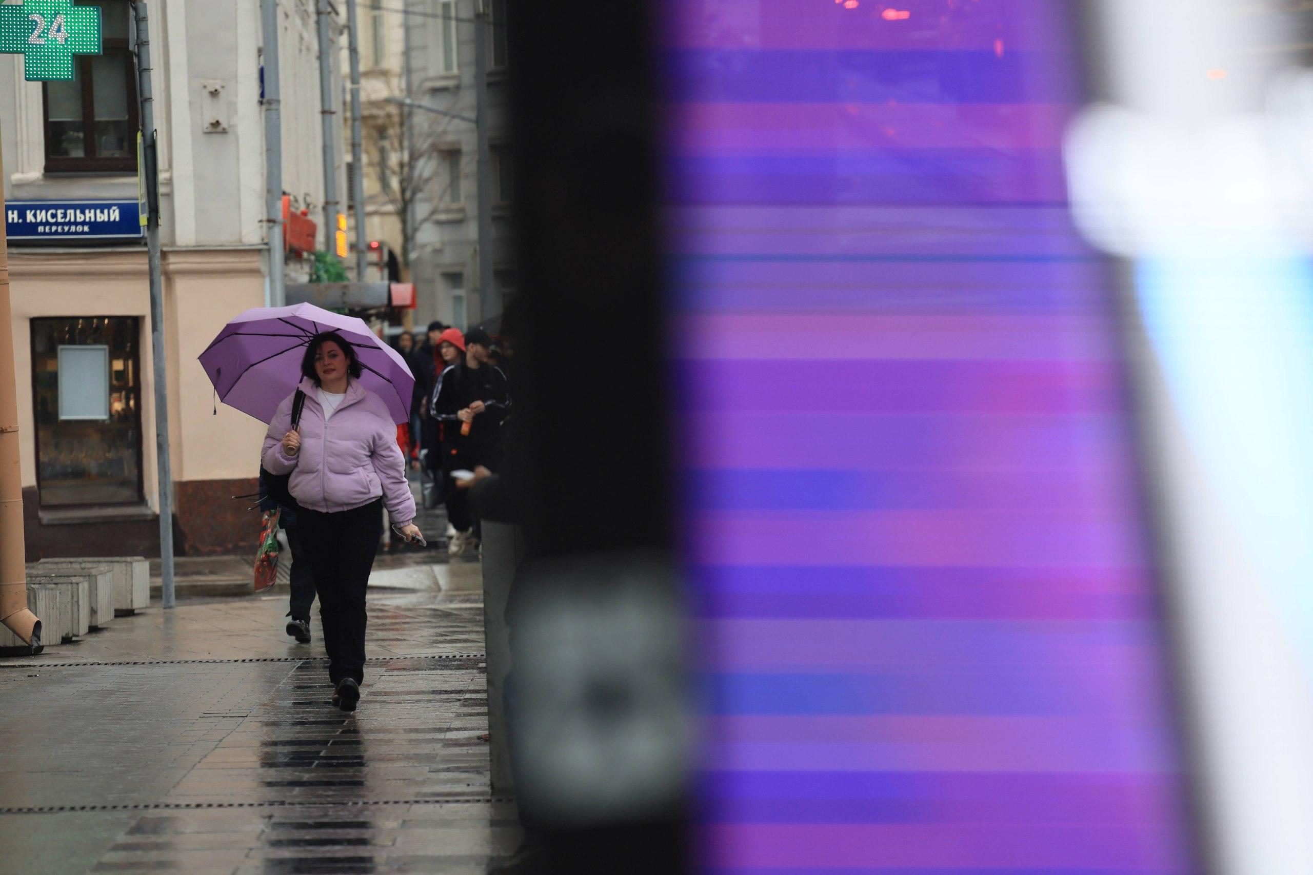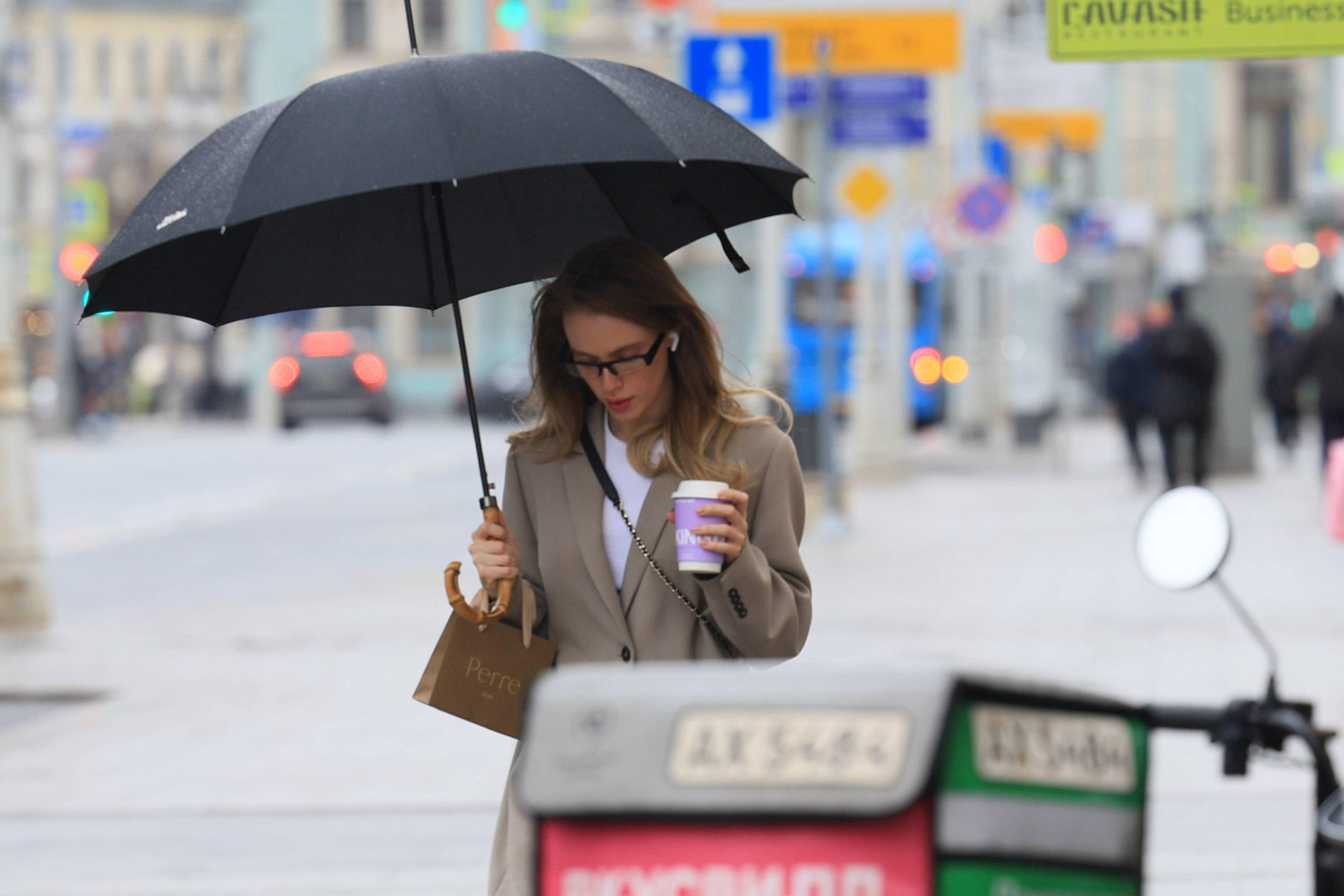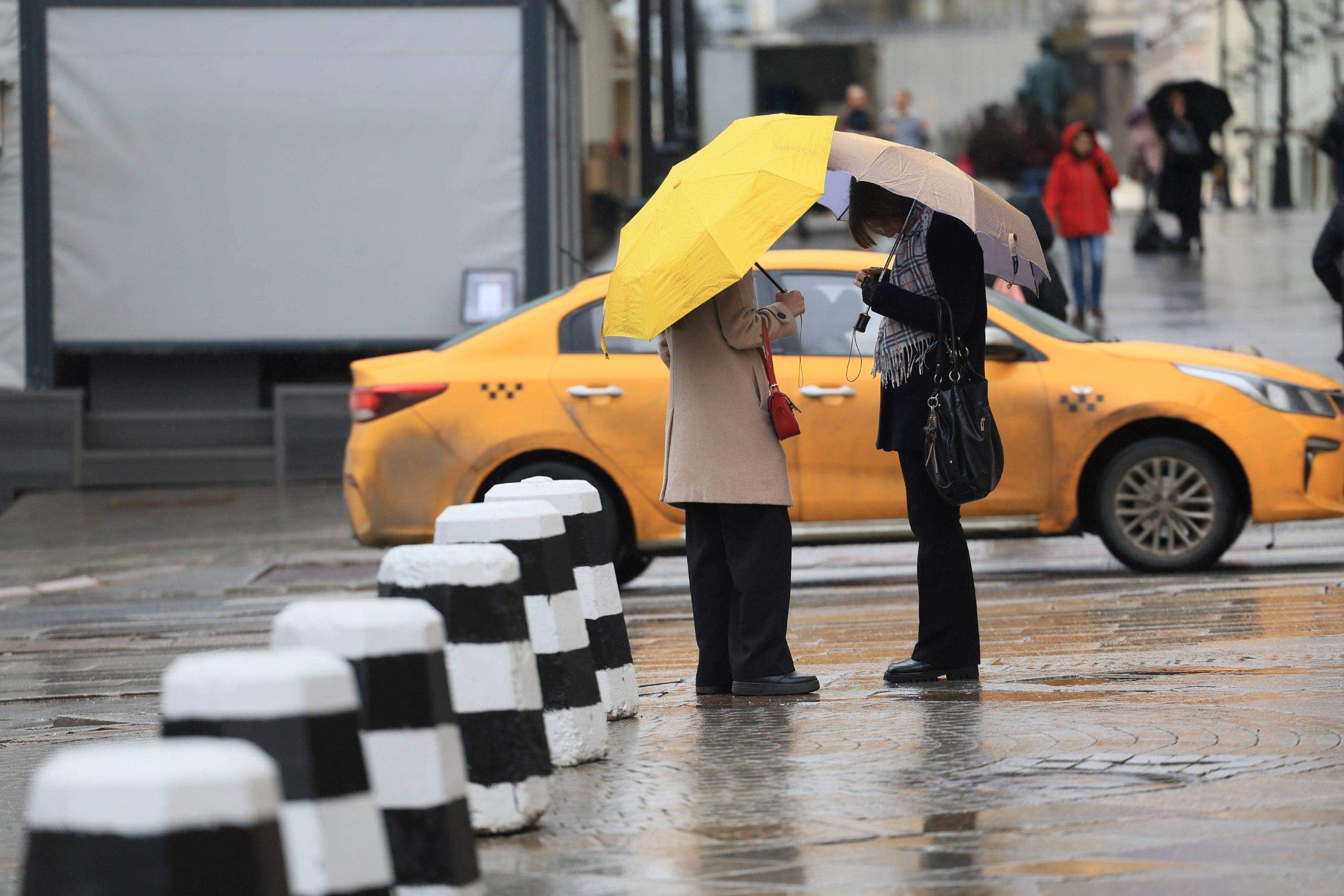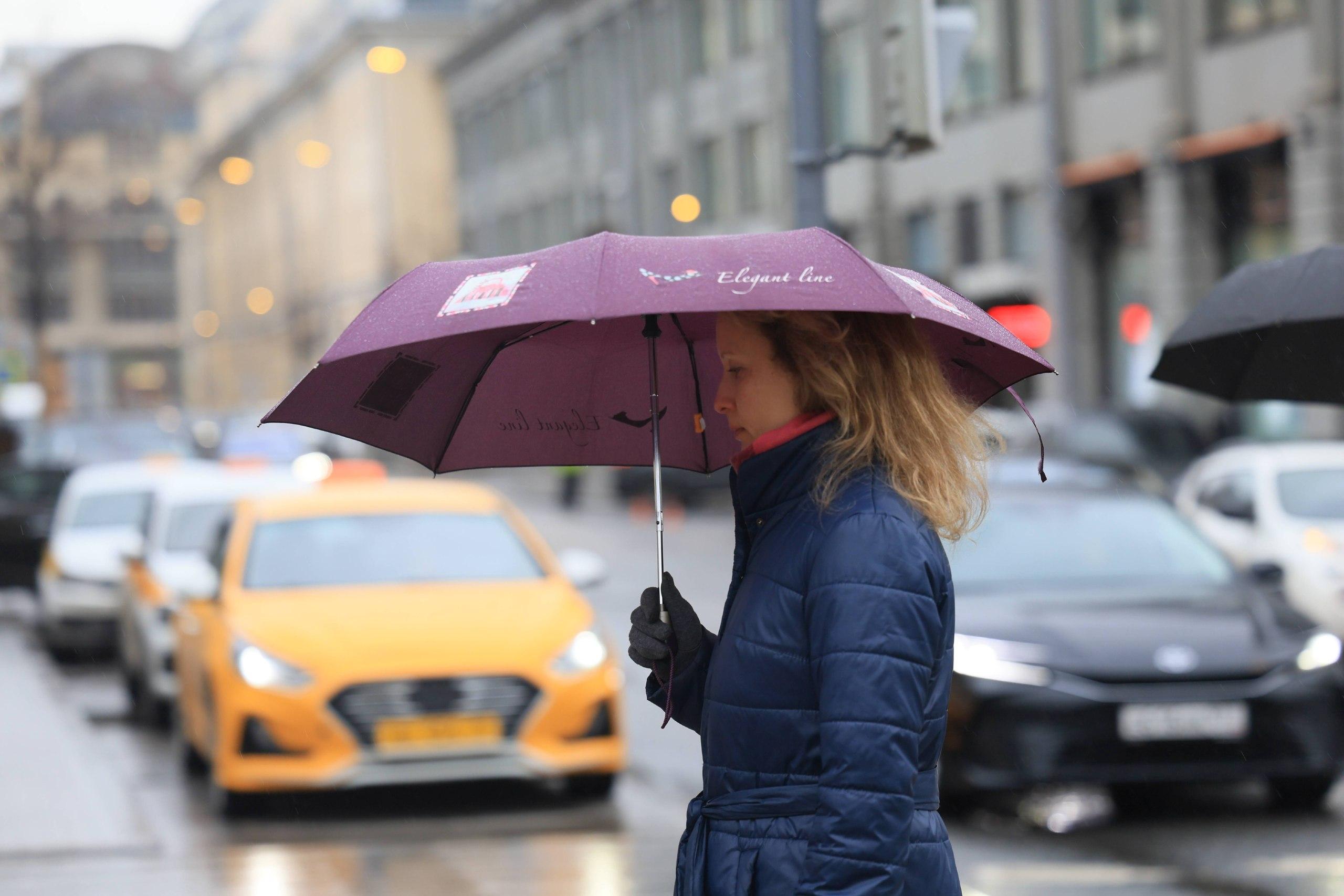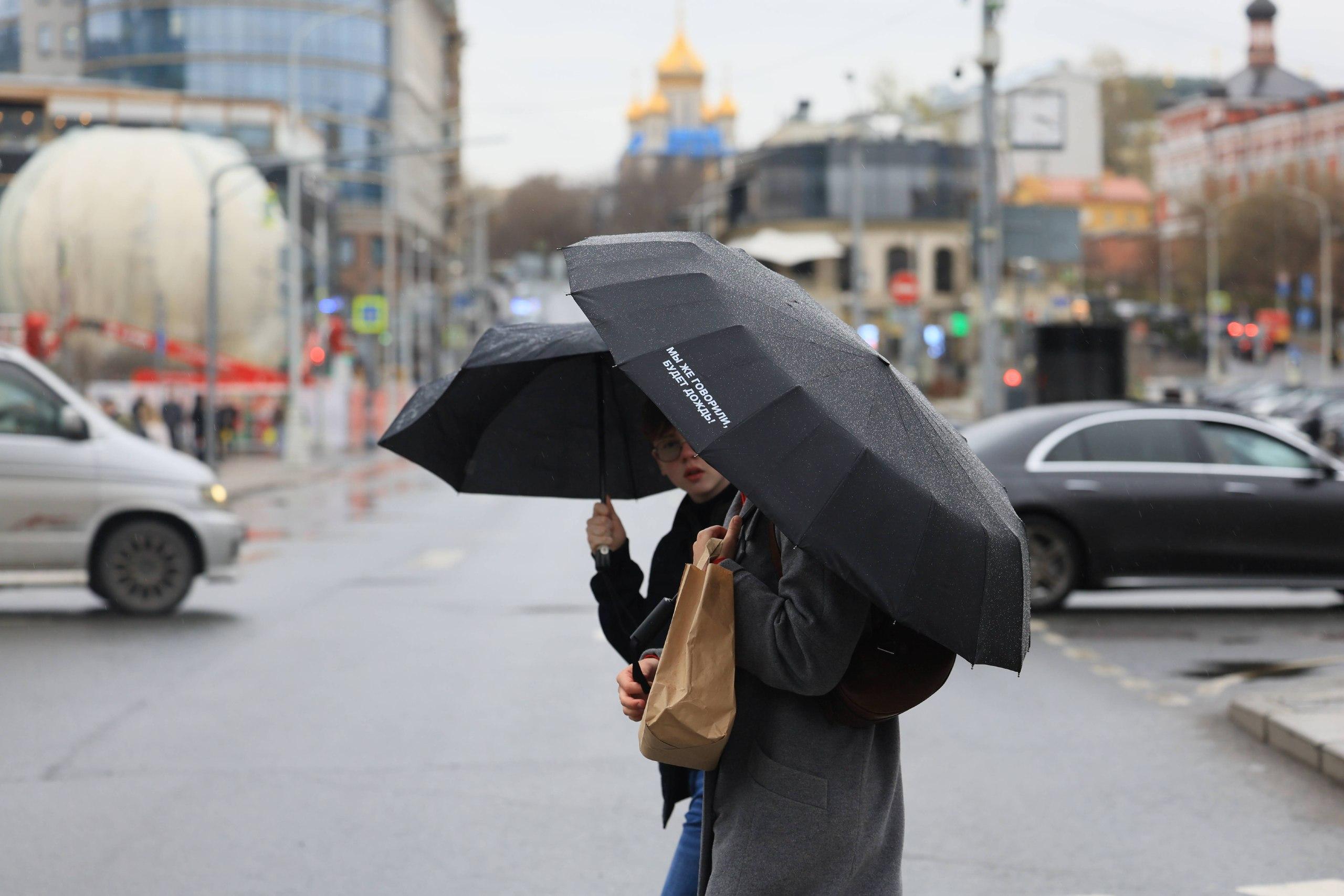 Москвичи спасаются от дождя с помощью зонтов и накидок