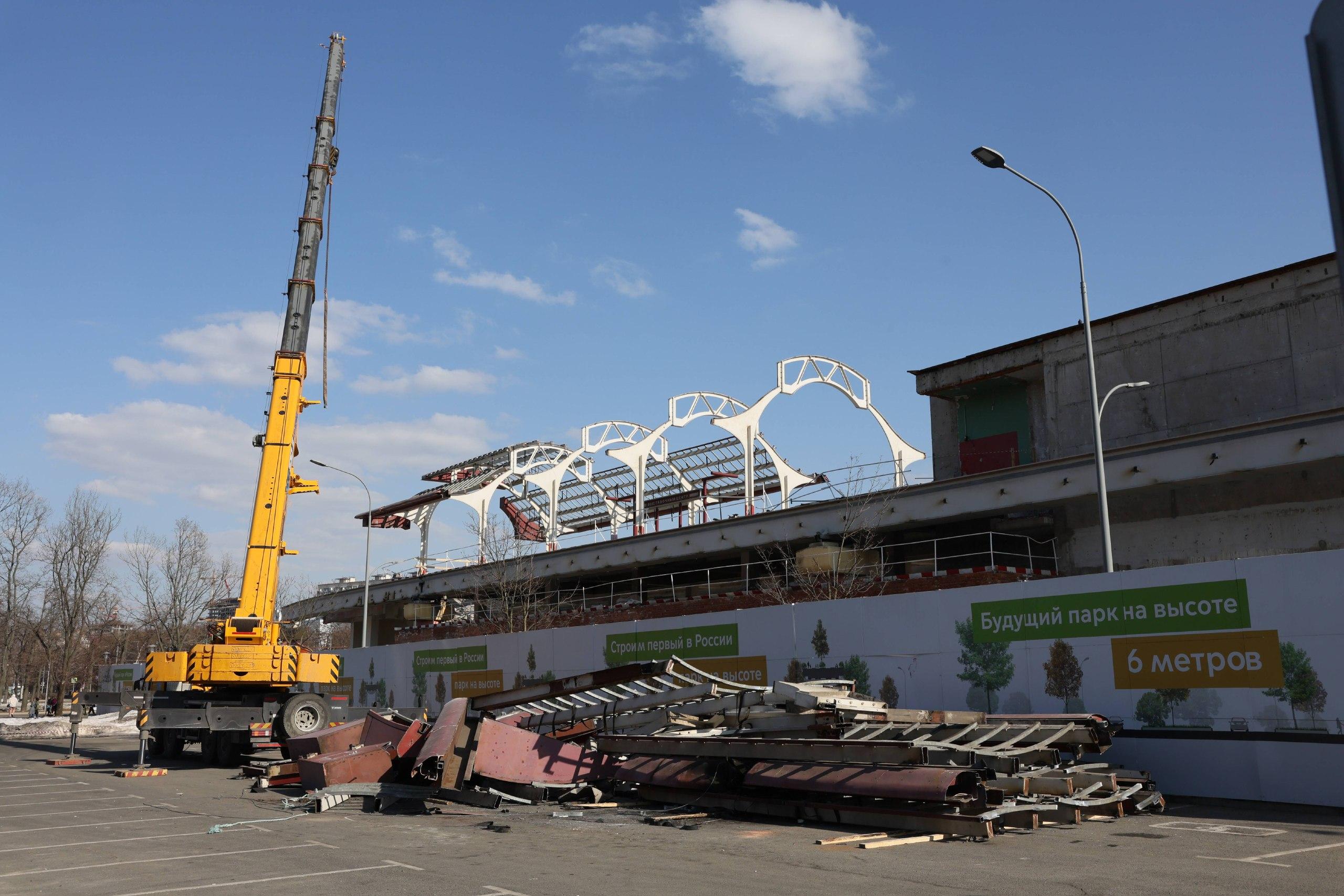 Снос монорельса для будущего высотного парка