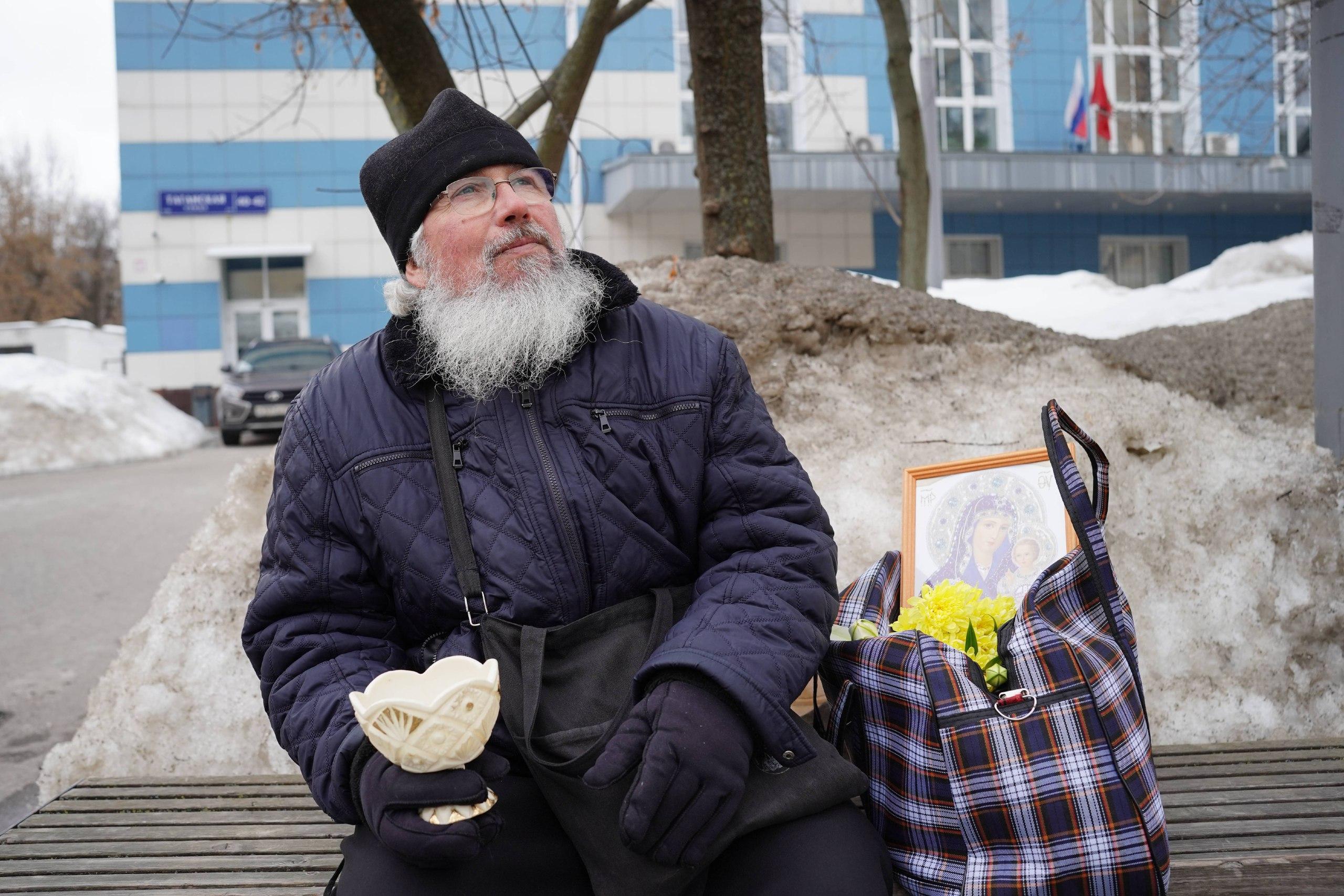 Мужчина несёт в сумке икону