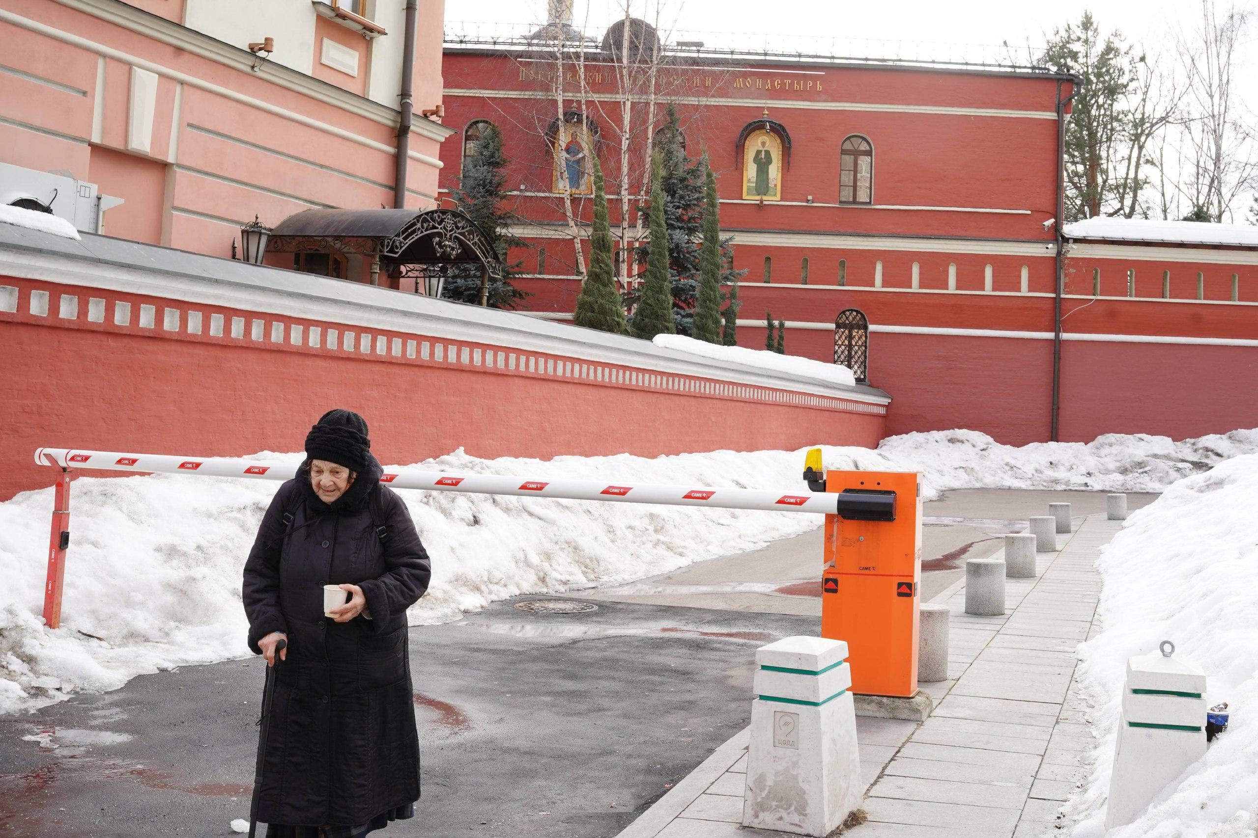 Верующие ожидают у стен монастыря