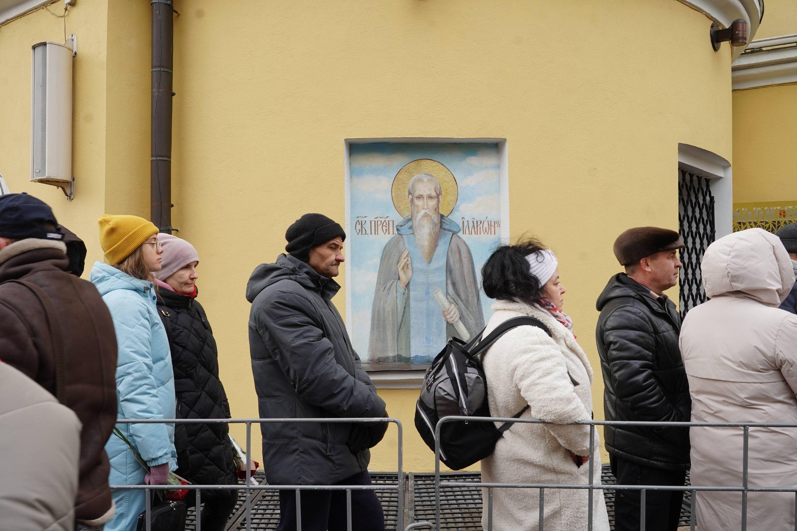 Очередь верующих протянулась на большое расстояние