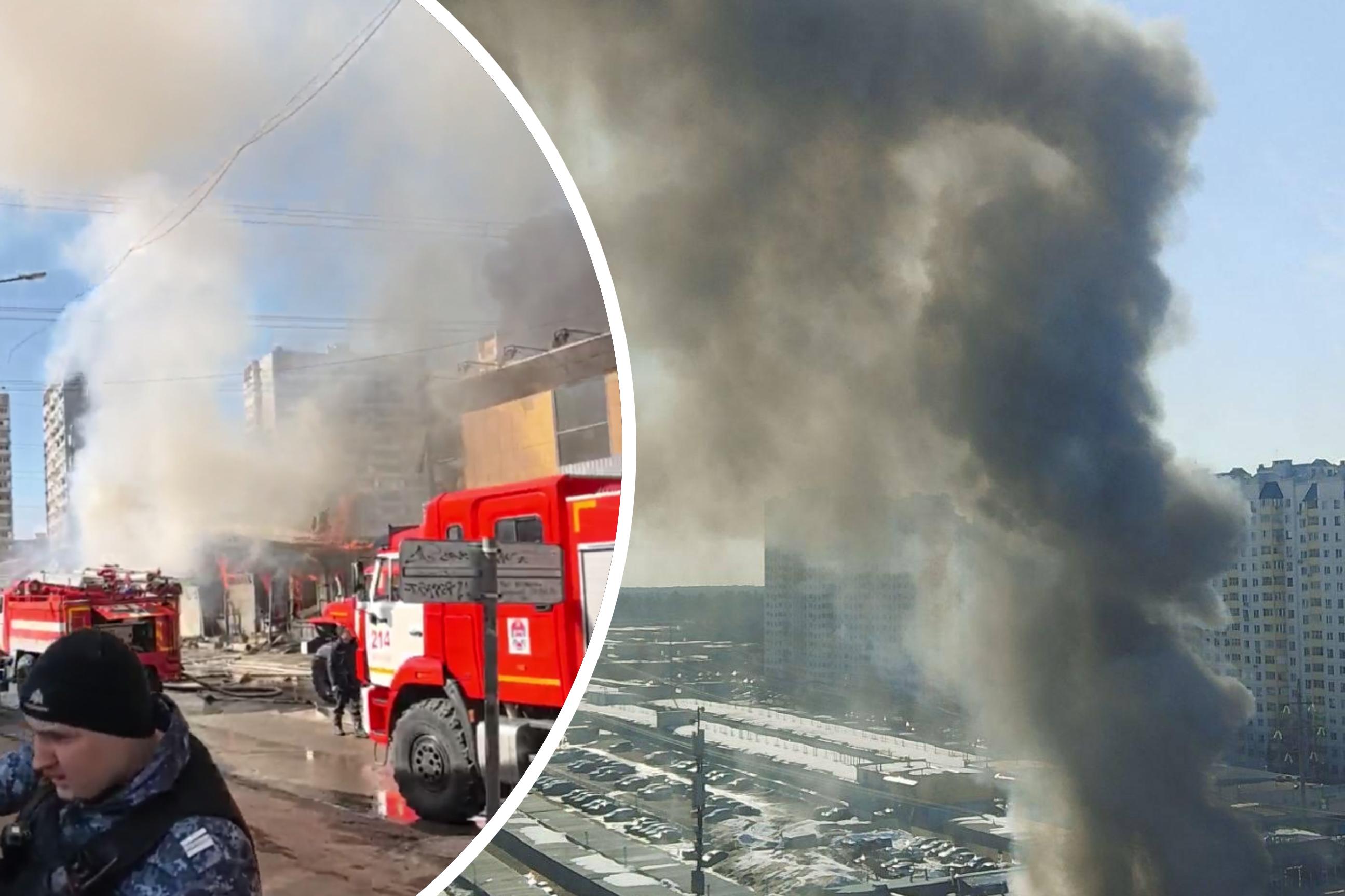 Крупный пожар на строительном рынке в Солнечногорске