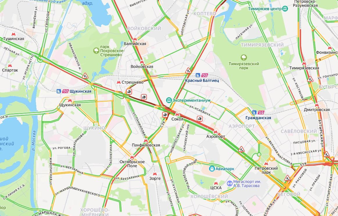 Жёсткое дорожно-транспортное происшествие с участием нескольких автомобилей в районе метро «Сокол».