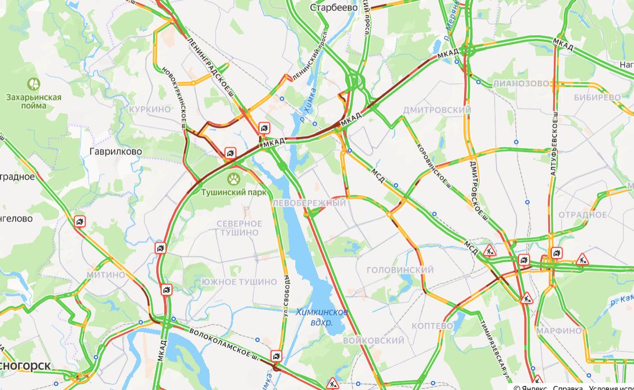 В результате ДТП были перекрыты три полосы движения, что вызвало затор длиной свыше 10 километров. Свободнее движение становится только ближе к Дмитровскому шоссе на северо-востоке Москвы.