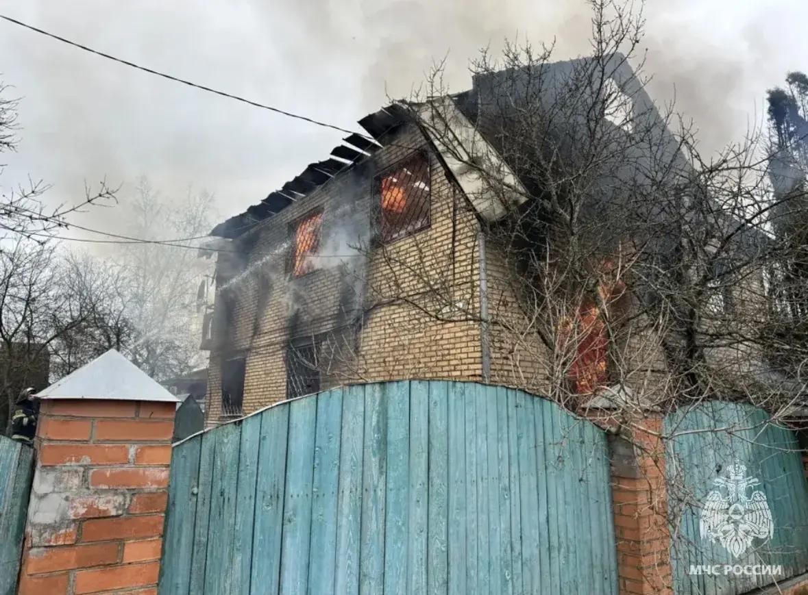 На кадрах с места происшествия видно, как из дома вырывались языки пламени, а крыша была практически полностью уничтожена огнем. В небо поднимался плотный столб черного дыма.