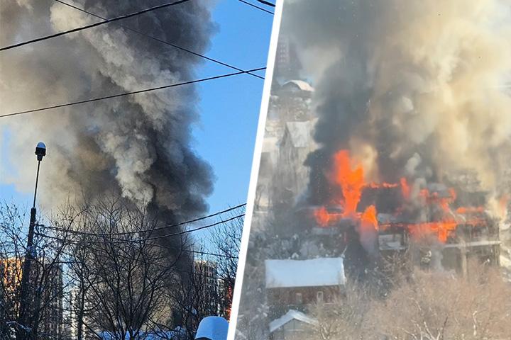 В среду, 4 февраля, в районе жилого комплекса «Митинский лес» на северо-западе Москвы произошло масштабное возгорание. Пламя быстро распространилось по крыше здания, а в небо поднялся густой столб черного дыма, который накрыл близлежащие территории.