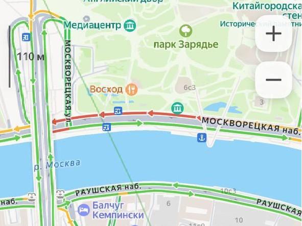 Дорожная пробка на месте происшествия у парка «Зарядье»