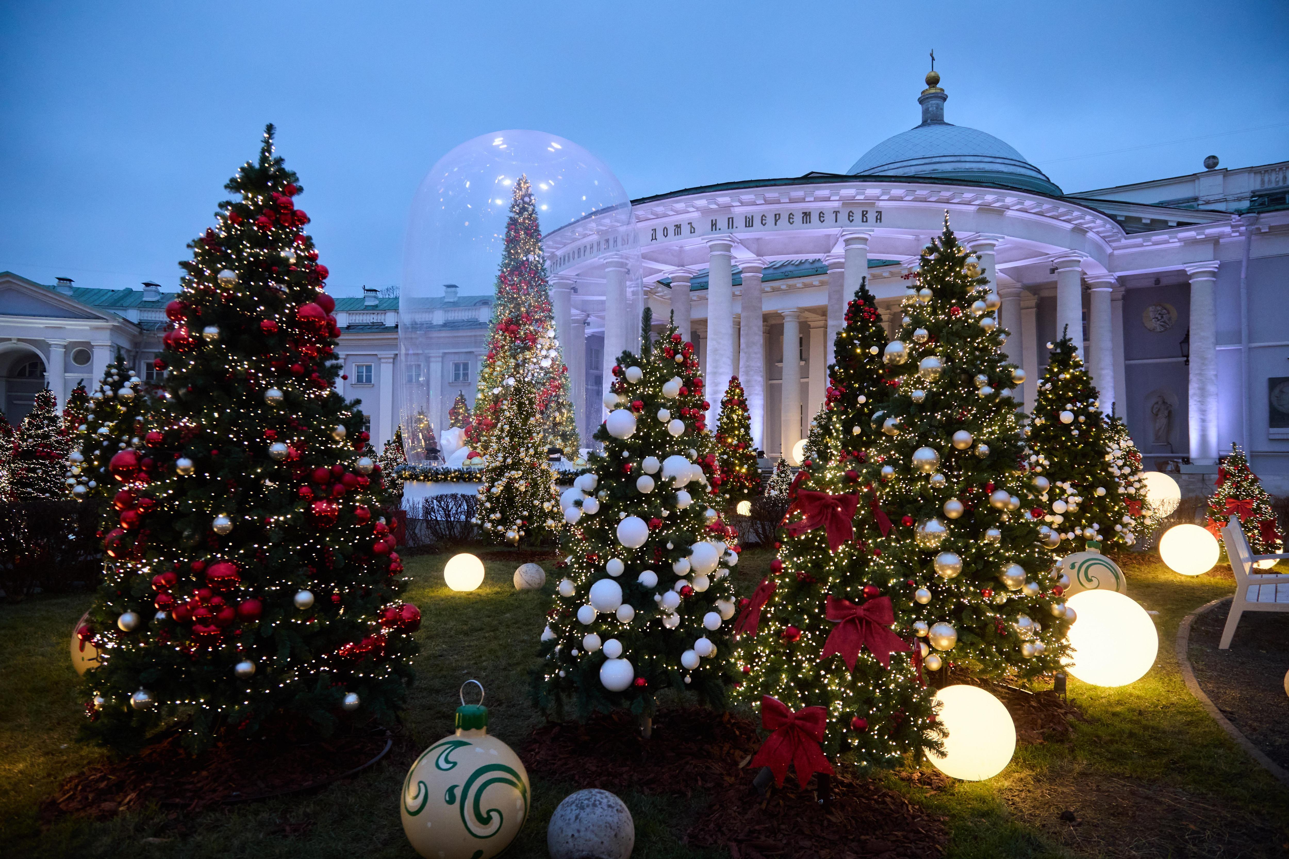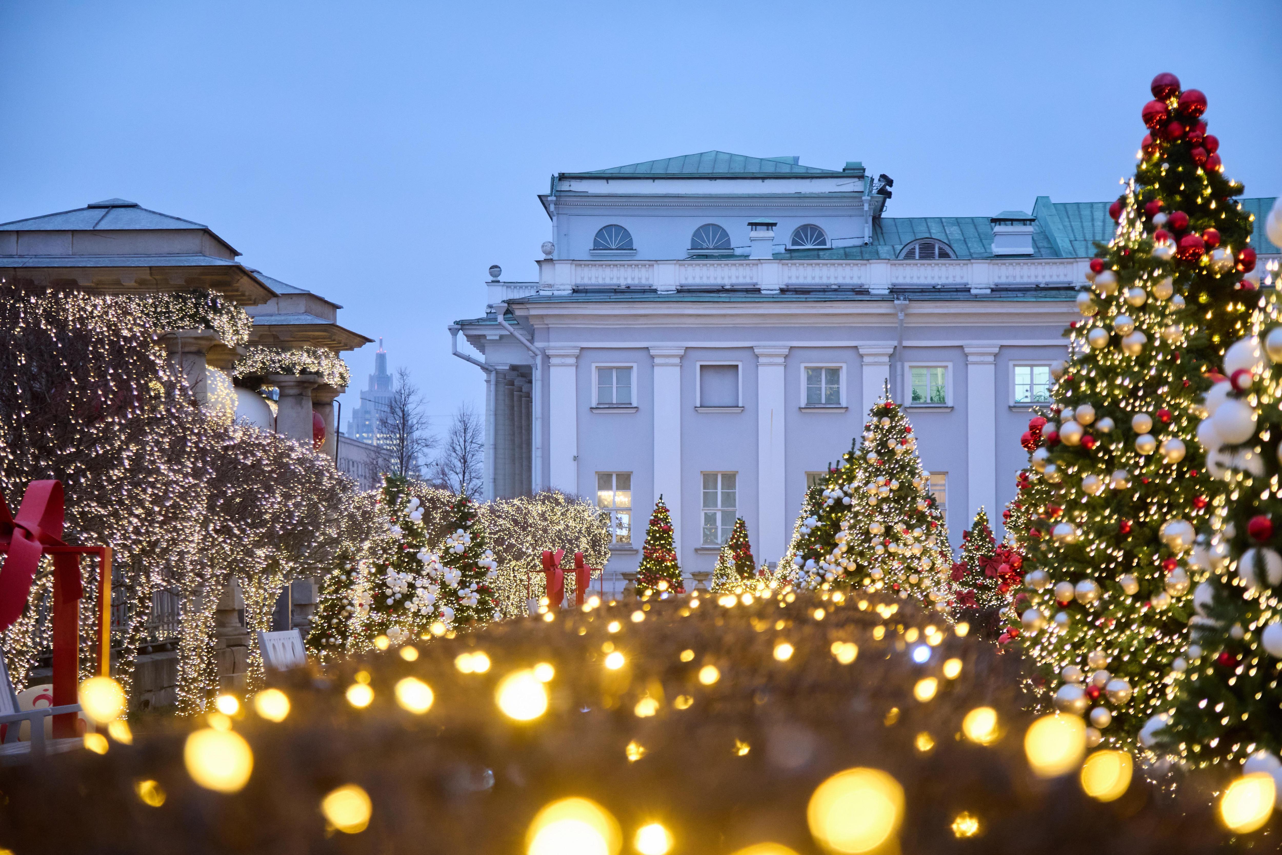 «Сад благодарности» открыли летом 2025 года в честь врачей. В рамках проекта «Зима в Москве» летние цветы сменились праздничным оформлением. Сверкающие огни на фоне старинного здания работы архитектора Кваренги создают волшебную обстановку.