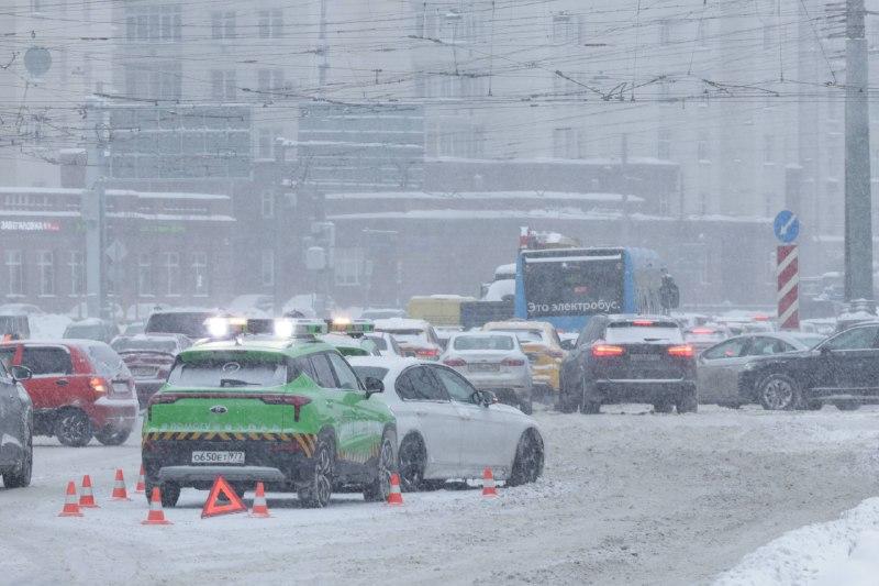 Мощный снегопад вызвал в Москве пробки 8 баллов