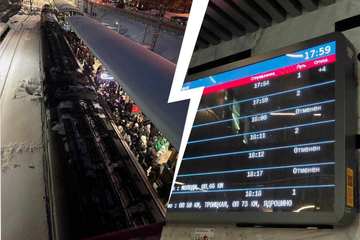 С 16 часов 3 февраля часть электричек на линии МЦД-2 прекратила курсирование, что вызвало скопление людей на платформах.