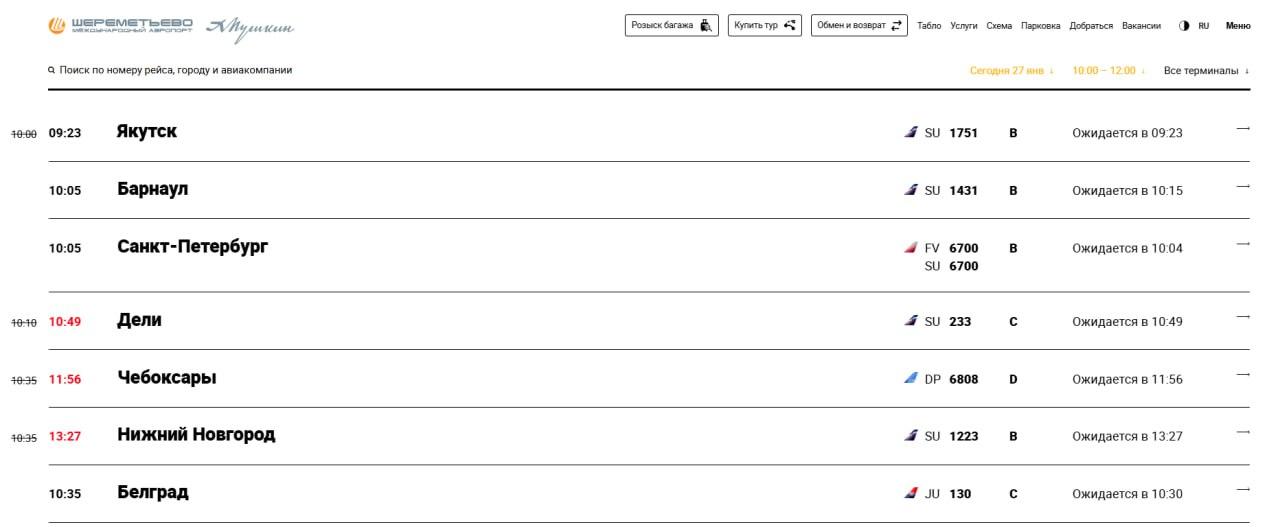Данные онлайн-табло указывают на задержки вылетов, которые в среднем не превышают двух часов. Пассажирам, направляющимся в Шереметьево, придется дождаться отмены ограничений.