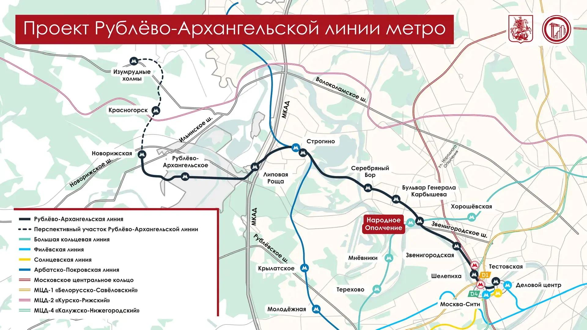 Ввод в эксплуатацию Рублево-Архангельской линии намечен на 2026 год.