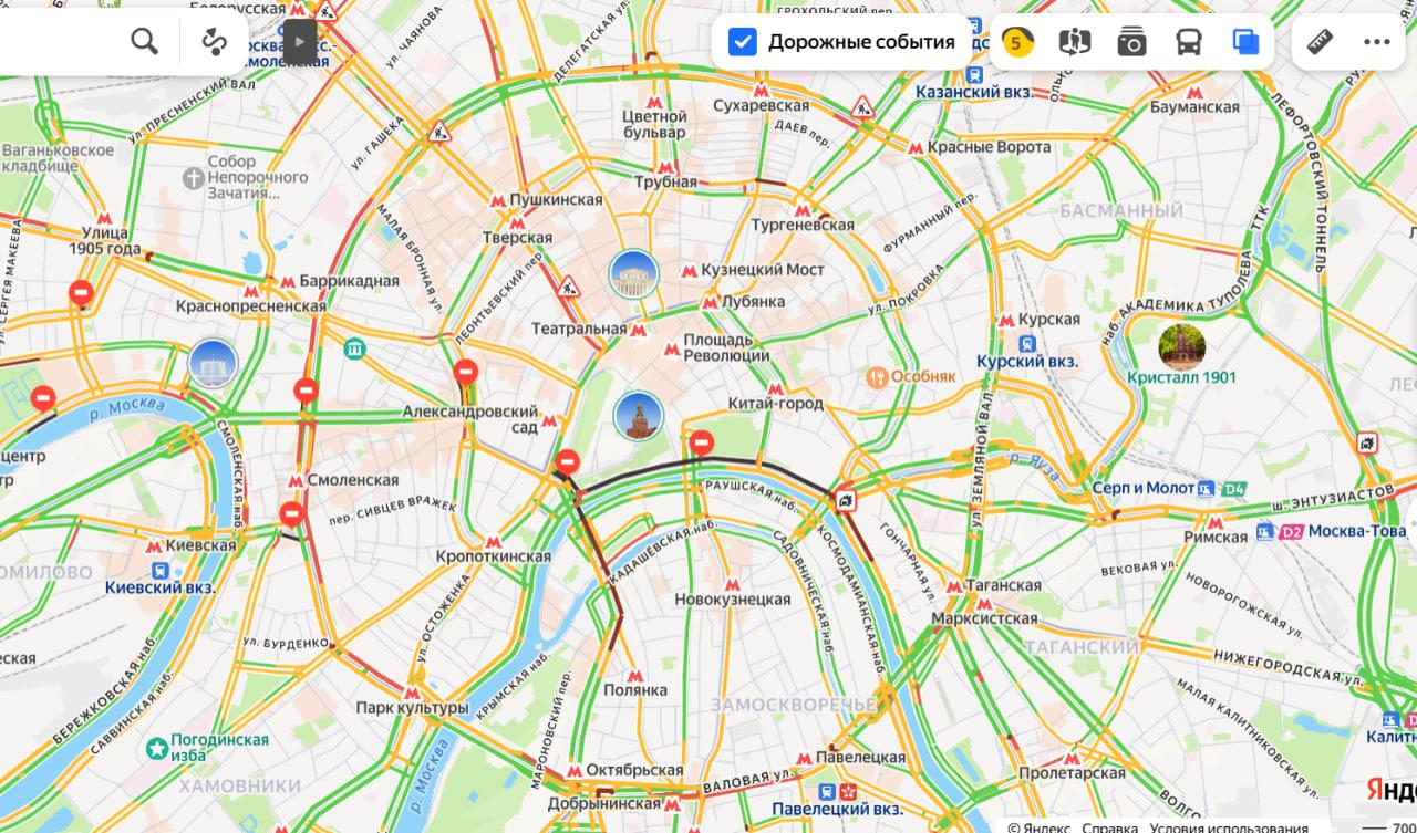 Вечером 25 февраля в центральной части Москвы были введены временные ограничения движения на нескольких улицах и набережных, что спровоцировало образование заторов.
