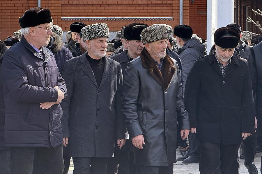 Церемония прощания с Умаром Джабраиловым в селе Новые Атаги